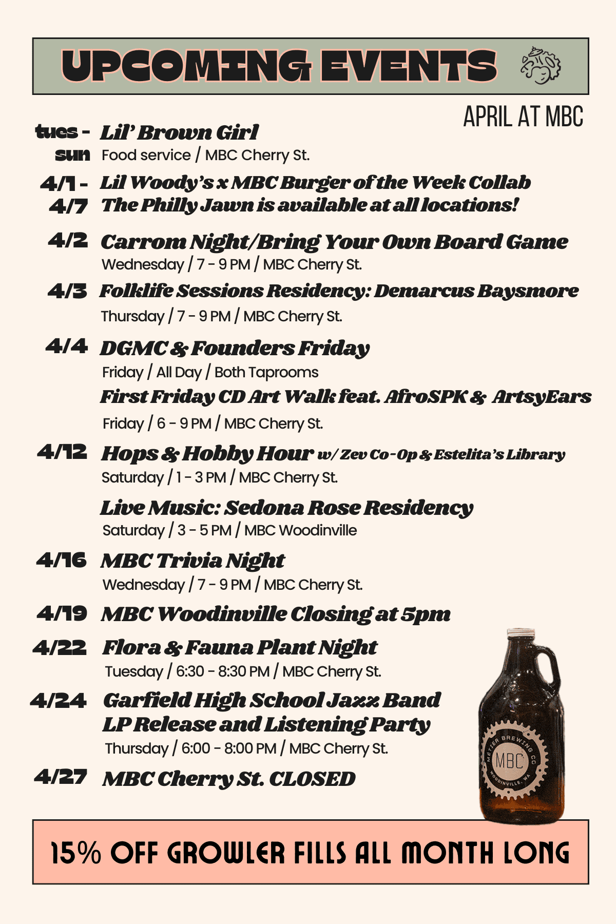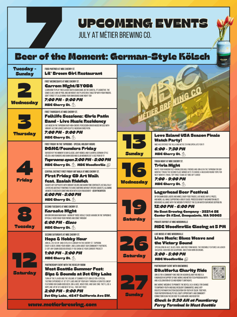 Join the fun! MBC regularly hosts events in collaboration with local artists, community organizations, and other neighborhood businesses. Our rotation of exhibits, live music, artwalks, new brew launches, and community awareness events are not to be missed. Check out our calendar below and then be sure to come out, show out, and show your support for MBC and the beautiful neighborhoods and business community of which are proud to be a part.